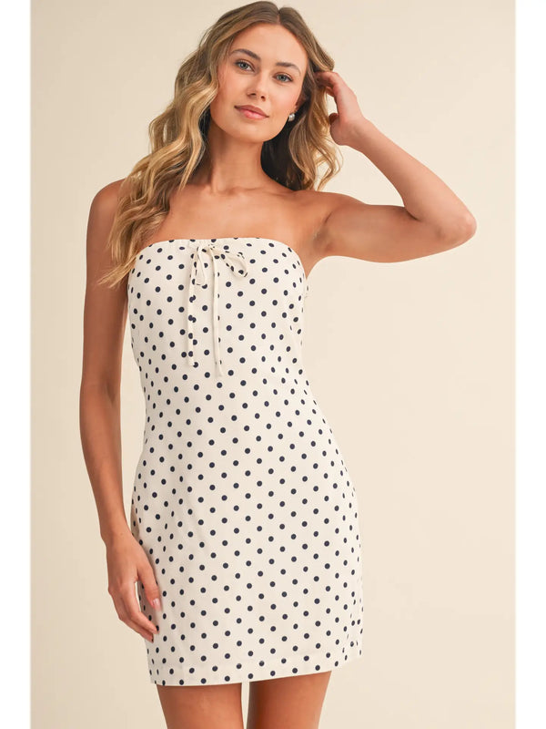 The Monroe Dress: Polka Dot Strapless Mini Sheath Dress