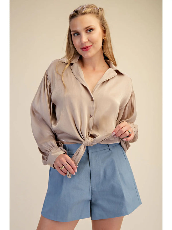 The Fiona Top: V-Neck Puff Sleeve Satin Top