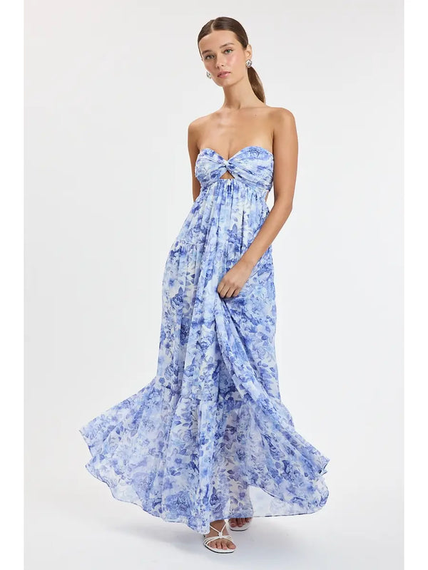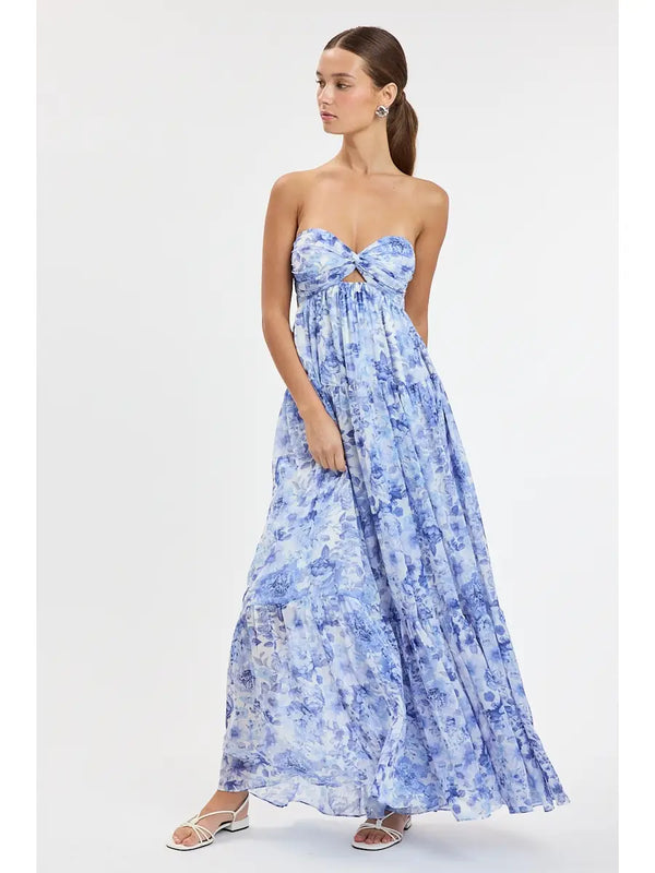 The Windy Skirt: White Waist Band Long Tiered Maxi Skirt With Ruffles