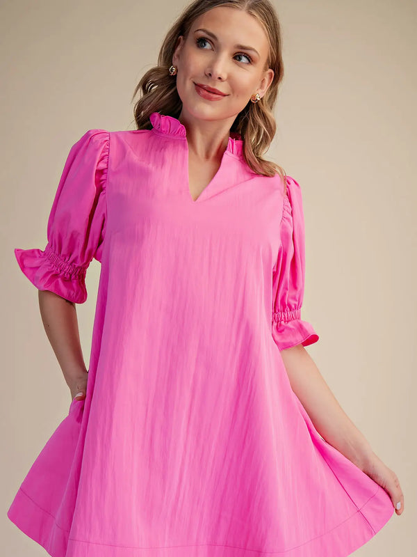 The Diana Dress: Ruffle V-Neck Puff Sleeve Dress