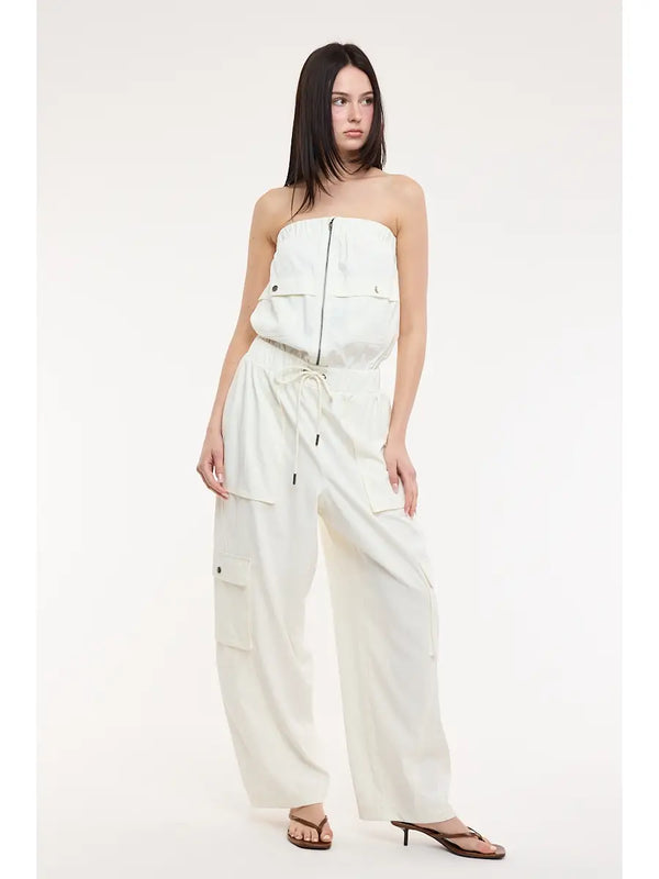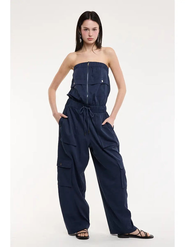 The Harbor Breeze Jumpsuit: Casual Front Zip Patch Pockets Cargo Tube Jumpsuit