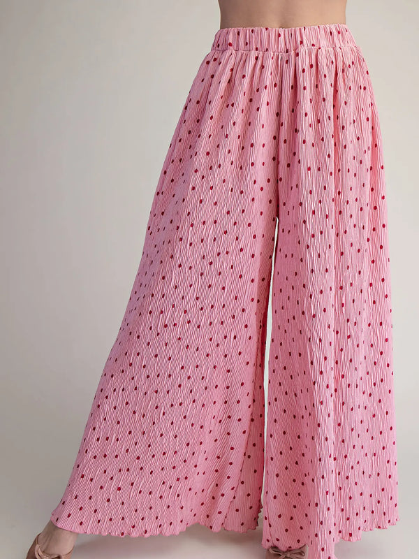 The Pamela Pants: Polka Dot Pleated High-Waisted Wide Pants