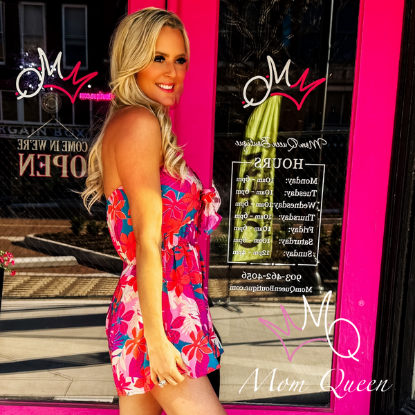 The Tropical Romper: Tropical Print Tie Front Tube Romper