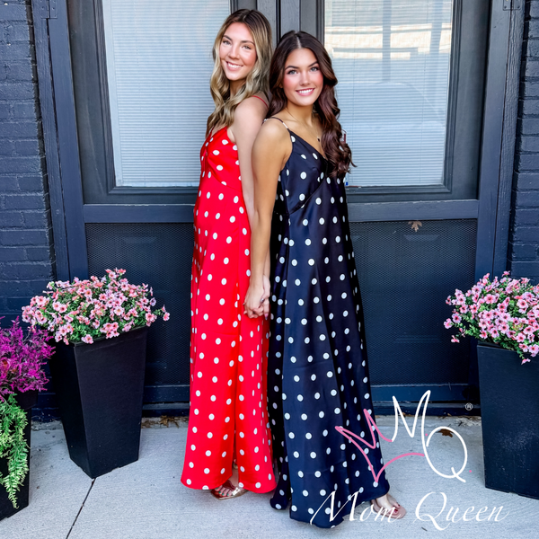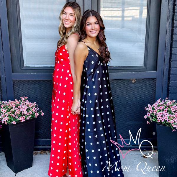 The Palmer Dress: Spaghetti Strap Polka Dot Maxi Dress