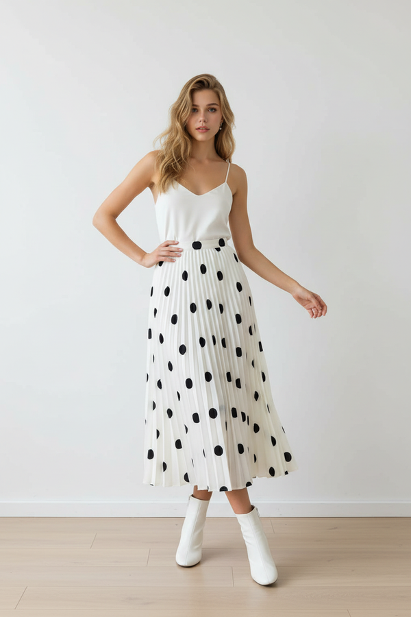 The Cute In Polka Dot Skirt: Polka Dot Pleated Skirt