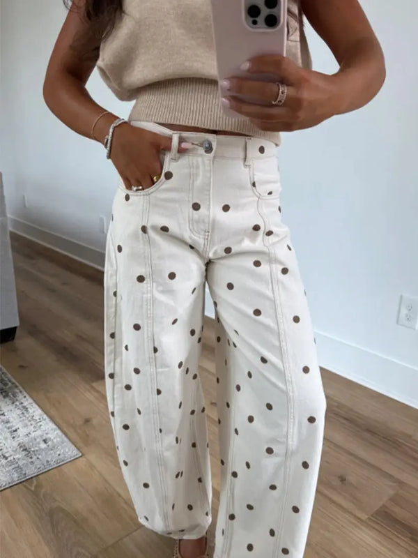 The Juliet Jeans: Straight Leg Polka Dot Jeans