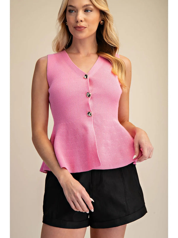 The Sutton Sweater: V-Neck Sleeveless Peplum Vest Sweater Top