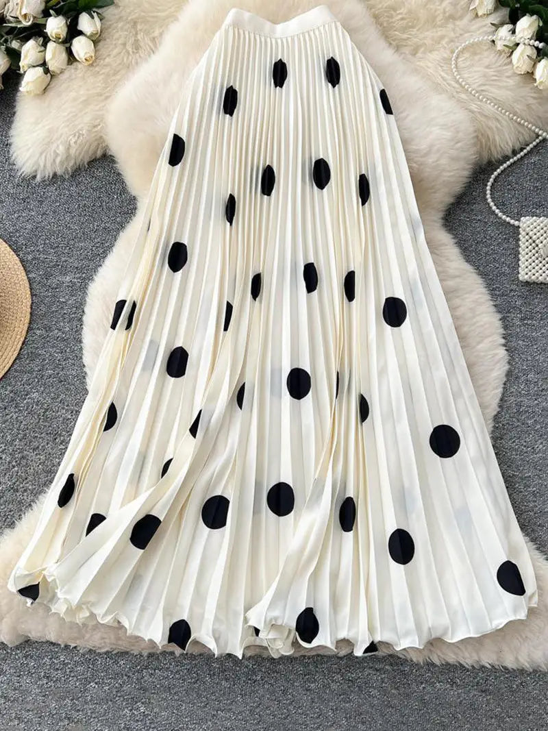 This polka dot pleated skirt combines timeless style with contemporary flair. The classic dot pattern adds visual interest while the structured pleats create a flattering silhouette that moves gracefully with you. Versatile enough for weekend brunch or dressed up for evening occasions, this piece transitions seamlessly from casual to sophisticated. The thoughtful design ensures you'll reach for it again and again, making it an essential addition to any wardrobe.