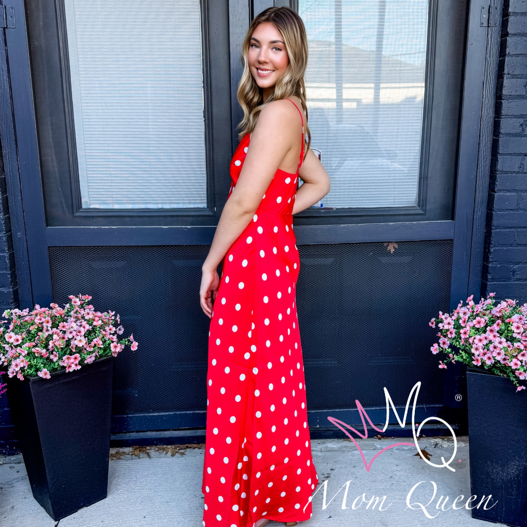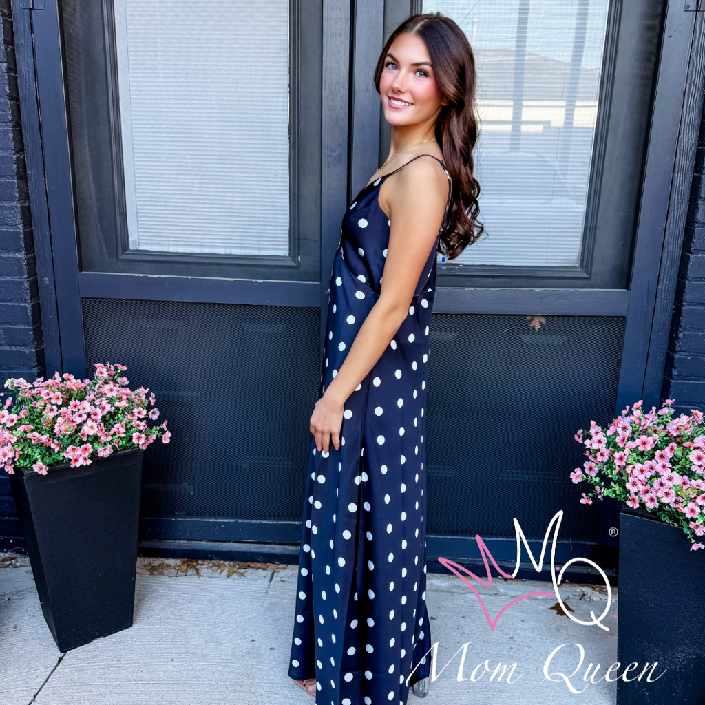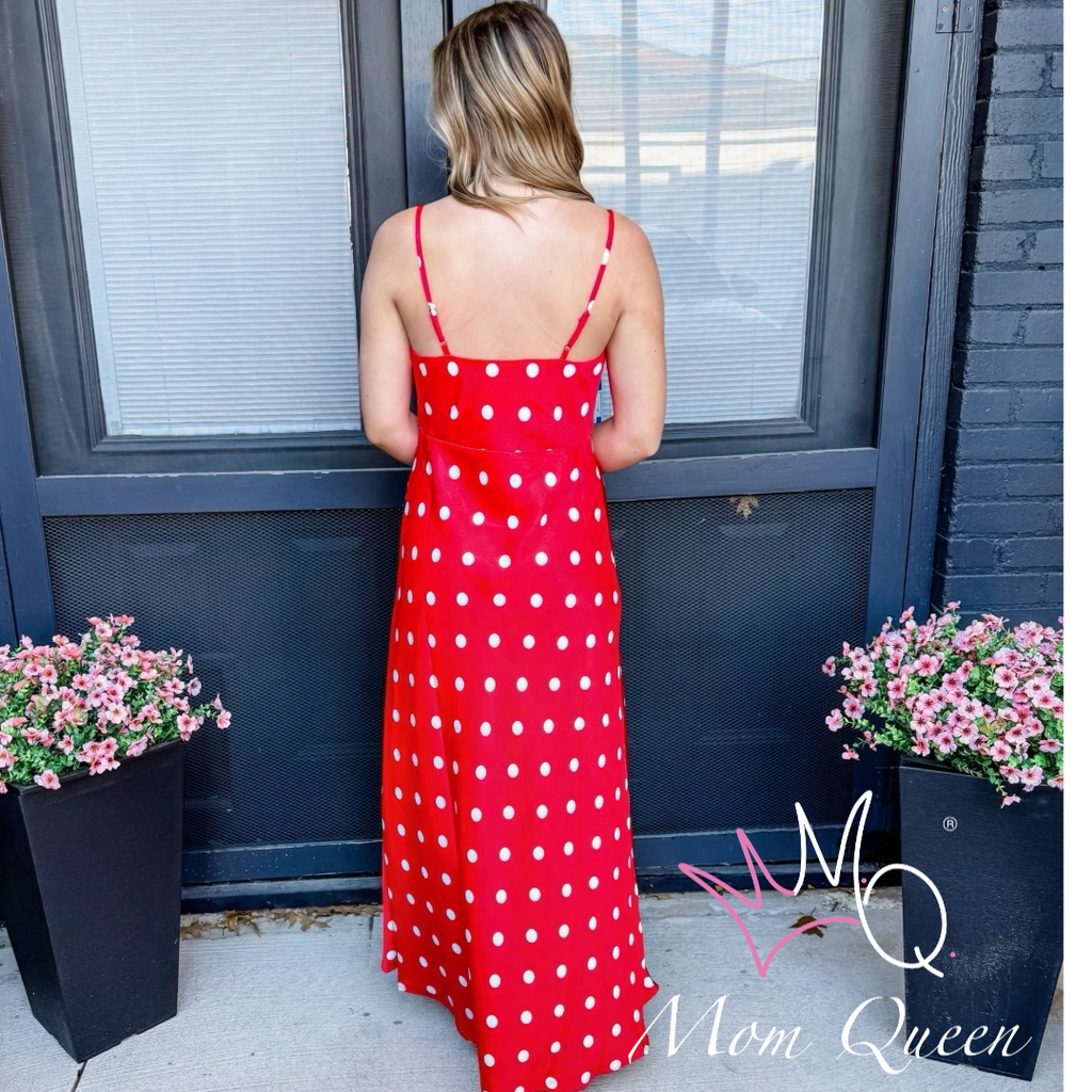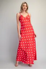 The Palmer Dress combines timeless elegance with playful style. This maxi dress features delicate spaghetti straps and a flattering full-length silhouette, perfect for creating an effortlessly chic look. The classic polka dot pattern adds visual interest while remaining versatile enough to transition from day to evening wear. Adjustable straps ensure a customized fit for all body types. Available in rich red and sophisticated black, this dress works beautifully for casual outings, special occasions, or layered styling. A wardrobe essential that delivers both comfort and refined aesthetic appeal.