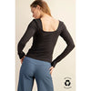 The Queen Long Sleeve Top features a sophisticated square neckline that flatters various body types while offering timeless elegance. Crafted with quality construction, the long sleeves provide versatile layering for any season. This wardrobe staple transitions seamlessly from casual daytime wear to polished evening looks. The structured neckline creates a refined silhouette, making it an essential piece for building a cohesive, versatile wardrobe. Perfect for those who appreciate classic design with modern appeal.