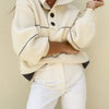 Elevate your everyday style with The Sage Sweater, a charming striped button-up knit that's equal parts cozy and chic. This versatile piece layers beautifully over tees or stands alone as a statement top, featuring a soft knit construction that feels as good as it looks. The classic striped pattern and functional buttons make it the perfect go-to for effortless, put-together vibes—whether you're running errands or meeting friends for coffee. A wardrobe essential that works as hard as you do.
