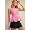The Sutton Sweater is your new go-to layering piece that brings serious style with zero fuss. This sleeveless v-neck vest features a cheeky peplum waist that cinches and flatters, making it perfect for dressing up basics or adding dimension to your favorite outfits. Whether you're pairing it over a crisp white tee, a silky blouse, or a fitted dress, the Sutton works overtime in your wardrobe. Cozy enough for all-day wear, polished enough for the office—this sweater vest is basically your style MVP.