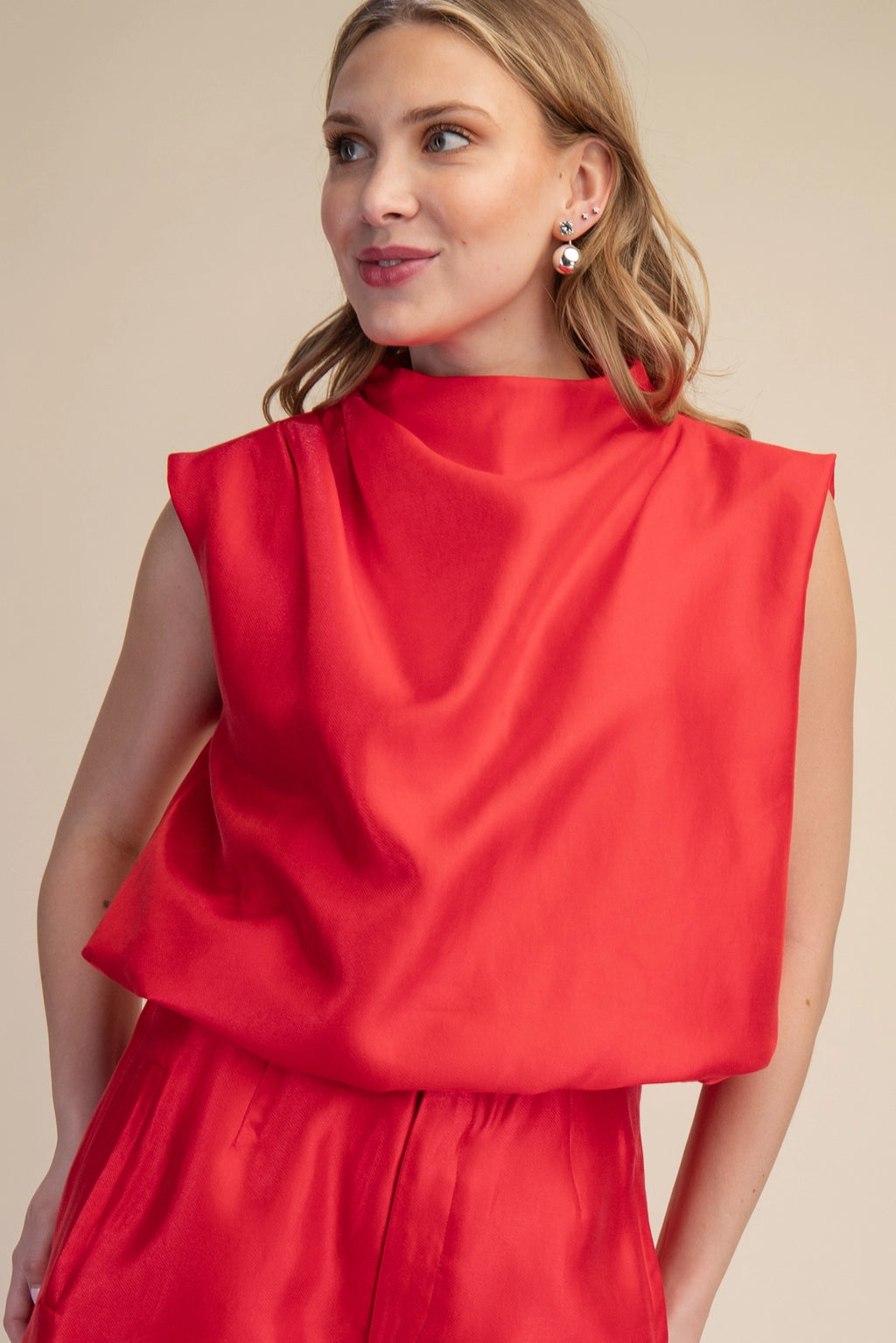 The Sophie Top is your go-to piece for effortless style! This sleeveless bubble top features a chic mock neck that adds instant sophistication to any outfit. The playful bubble silhouette creates flattering dimension while keeping things fun and flirty. Perfect for layering over basics or wearing solo, this versatile red top transitions seamlessly from casual days to night-out ready. Dress it up with tailored pants or keep it cool with your favorite denim. A wardrobe essential that brings personality to every look!