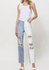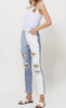 These new high waisted mom jeans with the split 2 tone light and white wash jeans are SO trending this season! Our Justice Jeans will be a go-to when your looking to be in trend and stand out in jean style. They go great with a bootie or sneakers. They feature a zipper button closure, 5 pockets, a distressed style and rolled cuff hem. We love to pair with any of our fun whit bodysuits or even our new cute puff sweatshirts. These jeans have little stretch, as they are a true Mom Jean so we suggest going up one size in these. We love wearing them year-round & know you will too!!